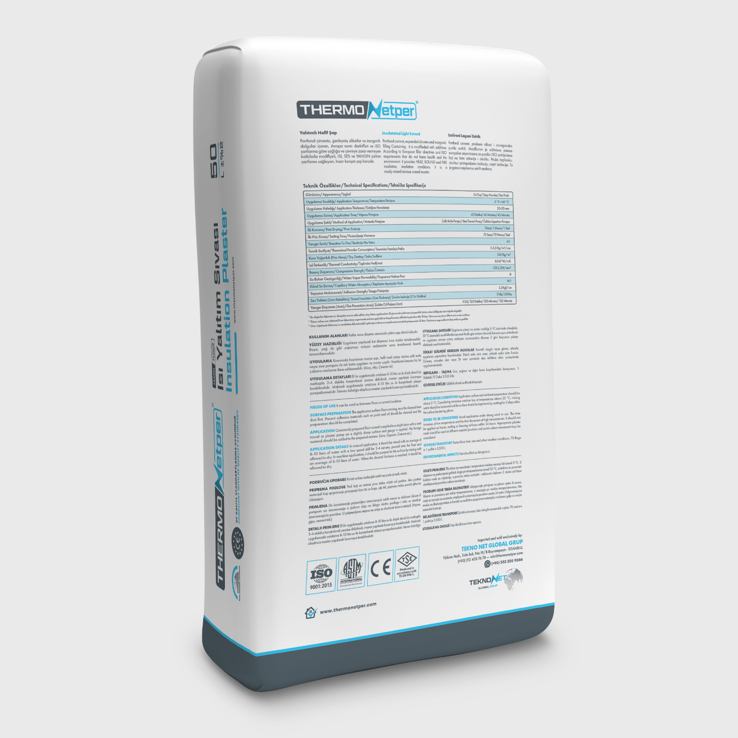 Avoid application under strong wind or sun. The time increases at low temperatures and the time decreases at high temperatures. It should not be applied on frozen, melting or freezing surfaces within 24 hours. Appropriate plaster mesh should be used at different material junctions and points where movement may be considered.