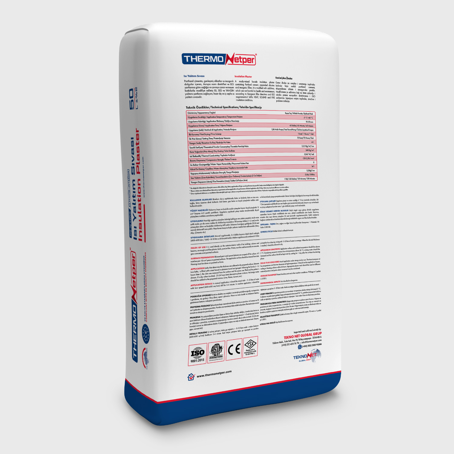 Портланд цемент је модификован адитивима који садрже експандиране силикате и неорганска пунила, који не штете здрављу и животној средини у складу са директивама европских норми и захтевима ИСО. Реч је о готовом унутрашњем термоизолационом малтеру који испуњава услове ТОПЛОТНЕ, ЗВУКЕ и ПОЖАРА.